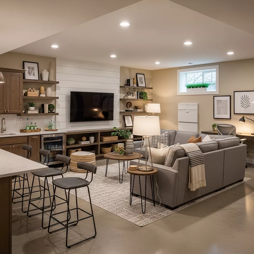 Basement makeovers with custom carpentry for functional living or workspaces.